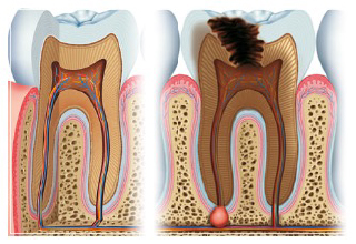この歯髄が悪化した虫歯や外傷で、細菌の感染を受けたような場合には、歯がひどく痛んだり、歯肉が腫れたりします。
